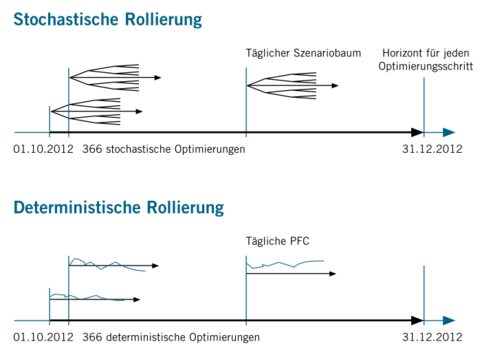 Über einen historischen Zeitraum, etwa ein vergangenes Gaswirtschaftsjahr, werden dann die täglichen Entscheidungen der Bewirtschaftung des Portfolios einmal stochastisch und einmal deterministisch optimiert. Die jeweils täglich angenommene zukünftige Preisentwicklung wird in der deterministischen Optimierung mit der täglichen Price Forward Curve modelliert und in der stochastischen Optimierung mit einem Szenariobaum. So ergeben sich über den historischen Zeitraum zwei unterschiedliche Entwicklungen der Bewirtschaftung und des Ressourceneinsatzes. Am Ende des Bewirtschaftungszeitraums kann dann verglichen werden, wie viel mehr Profit die stochastische Optimierungsserie erwirtschaftet bzw. wie viel Kosten sie eingespart hat.